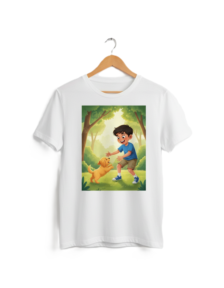 Brighten up your little girl’s wardrobe with our charming and delightful “Sweet Playtime” White T-Shirt, exclusively featuring the adorable Indian girl with her doll and soft toys design! This unique tee captures a moment of joyful innocence, making it a perfect addition to any young girl’s collection. Crafted from soft, breathable 100% cotton fabric, this half-sleeve, round-neck T-shirt ensures all-day comfort while keeping your child cool and confident. The vibrant, high-quality sublimation print showcases a cute Indian girl, around 7-8 years old, playing happily with her favorite doll, a gentle elephant, and a cuddly tiger, all surrounded by a shower of colorful confetti in a cozy room. The GIVR brand signature is subtly integrated within the artwork, assuring authenticity and quality. The regular fit allows for easy movement, making it ideal for playtime, school, outings, casual wear, or comfortable lounging at home. The fabric is gentle on delicate skin, colorfast, and designed to maintain its charm and durability even after multiple washes. Perfectly suited for girls aged 7 to 12 years, this T-shirt blends heartwarming style with practicality. Whether it’s for everyday fashion, a thoughtful birthday gift, or simply adding a touch of cheer to her wardrobe, this T-shirt offers a unique design and vibrant imagery that will quickly become a cherished favorite. ***Please mention which design you will prefer or randomly any design may be shipped” Key Features: Charming Design: Features a sweet Indian girl playing with her doll and plush toys. Premium Comfort: Made from 100% soft, breathable cotton for all-day wear. Vibrant & Durable Print: High-quality sublimation ensures lasting colors and detail. Everyday Versatility: Ideal for school, playdates, or relaxing at home. Authentic GIVR Brand: Signature integrated subtly into the design. Give your child the joy of a unique design and everyday comfort with this must-have T-shirt! Perfect gift for kids birthday return gift or any other kind of return gift